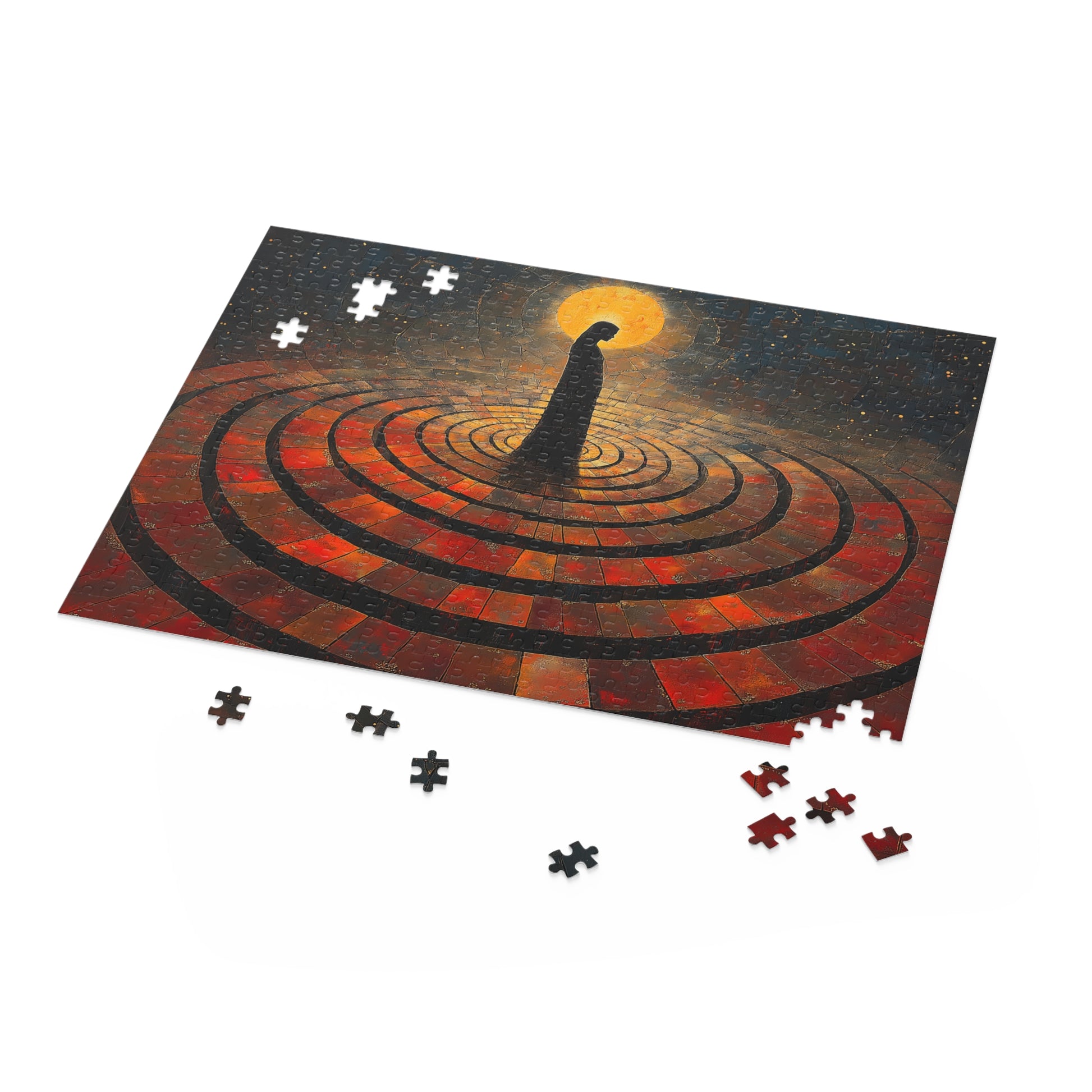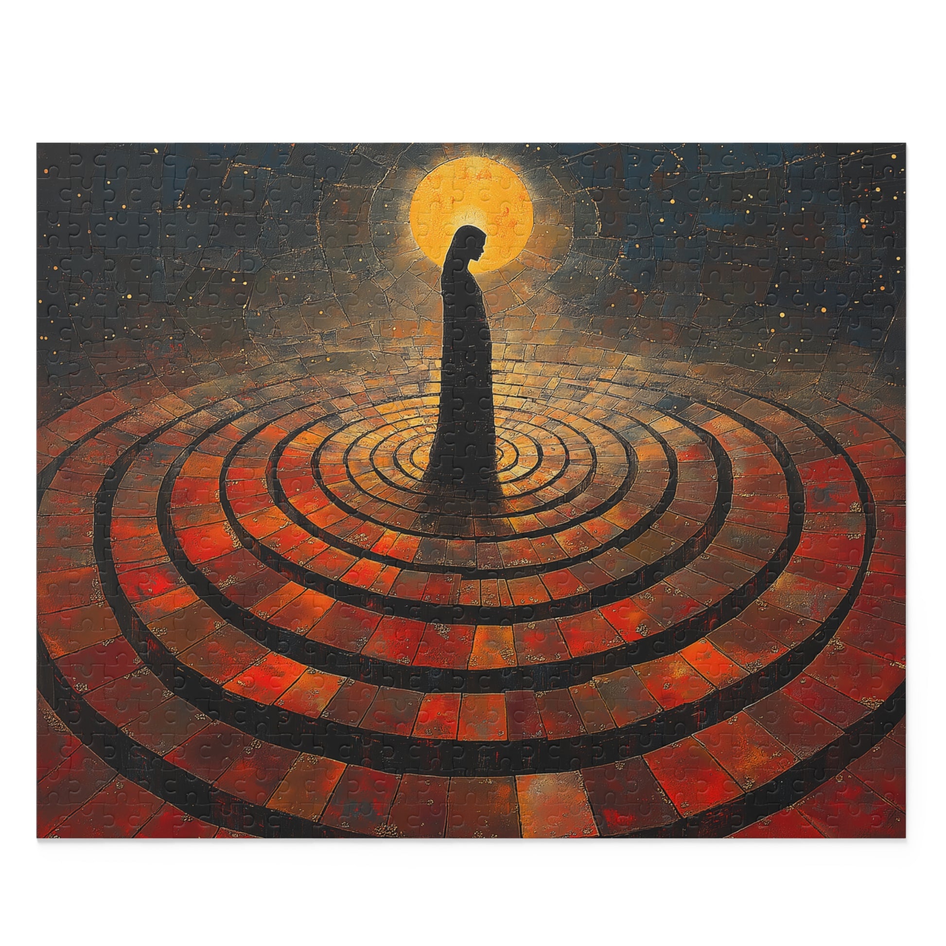 Each step lands within celestial rings; a soft descent from the divine to the earthly. Her silhouette glows not from light, but from knowing. Halo Descent captures the sacred tether between realms; where presence is power and descent is deliberate. She does not fall; she lowers herself with intention. This piece honors spiritual women, ancestral energy, and the divine grace found in quiet strength.