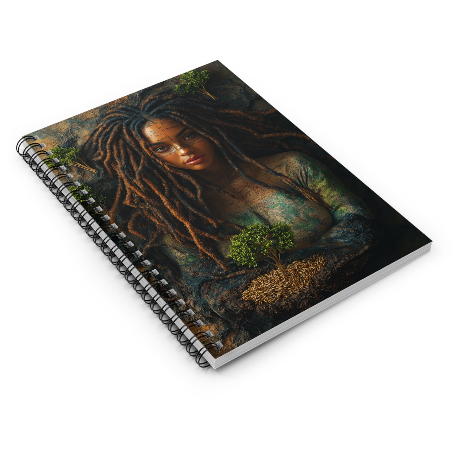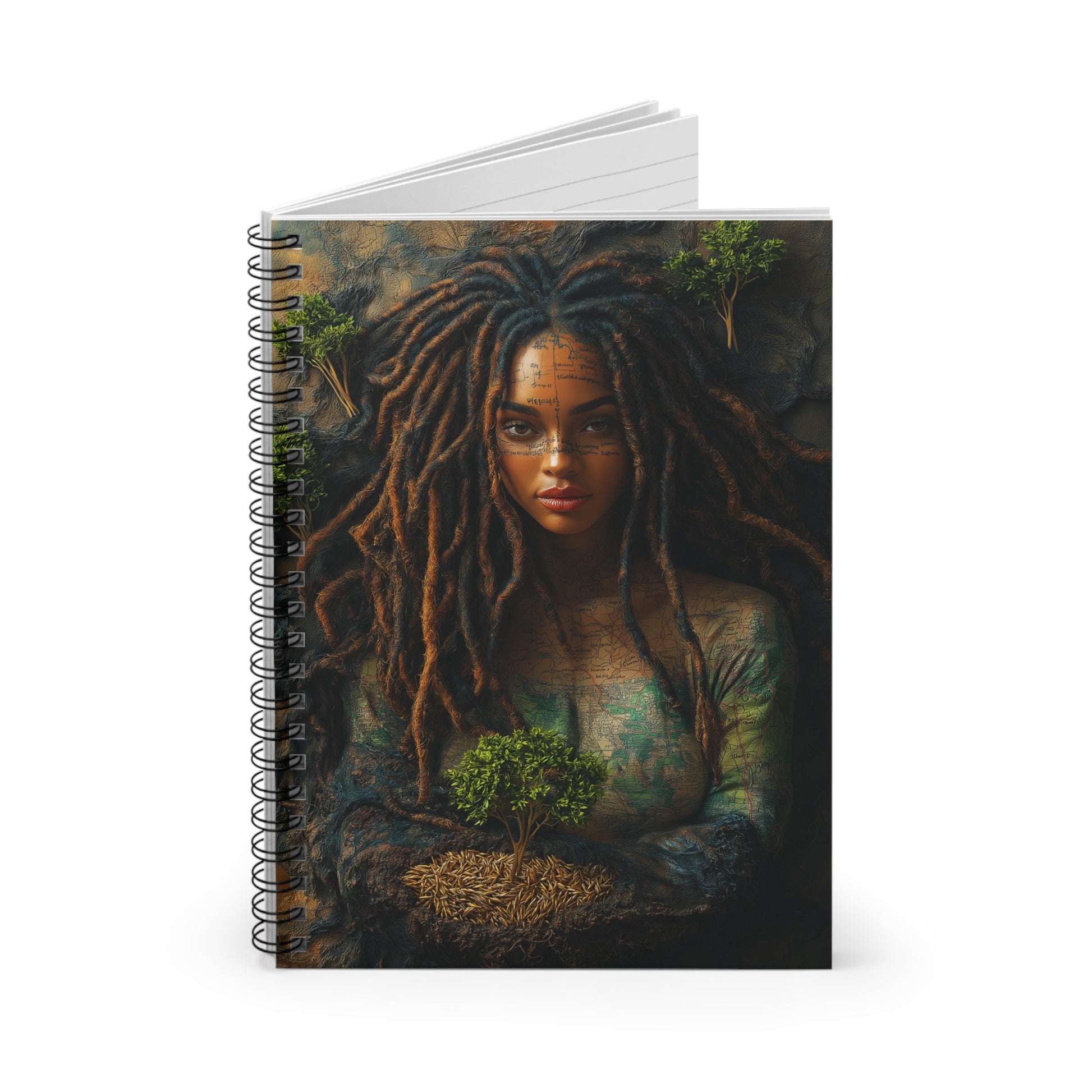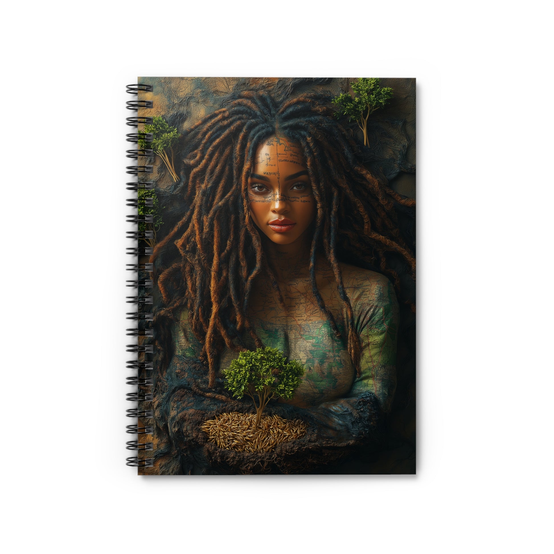 Terra Tethered is a portrait of rooted belonging. Her skin carries the blue of rivers, the lines of ancient roots, the unmarked trails of those who walked before. She is both map and memory — geography made flesh. Here, earth is not backdrop but bloodline, and her gaze holds the weight of every place that shaped her.